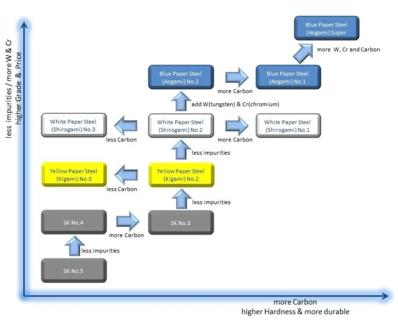 탄소강은 그나마 나은 편이다. 일본이 탄소강 칼로 유명해서인지 명칭도 통일되어 있다.