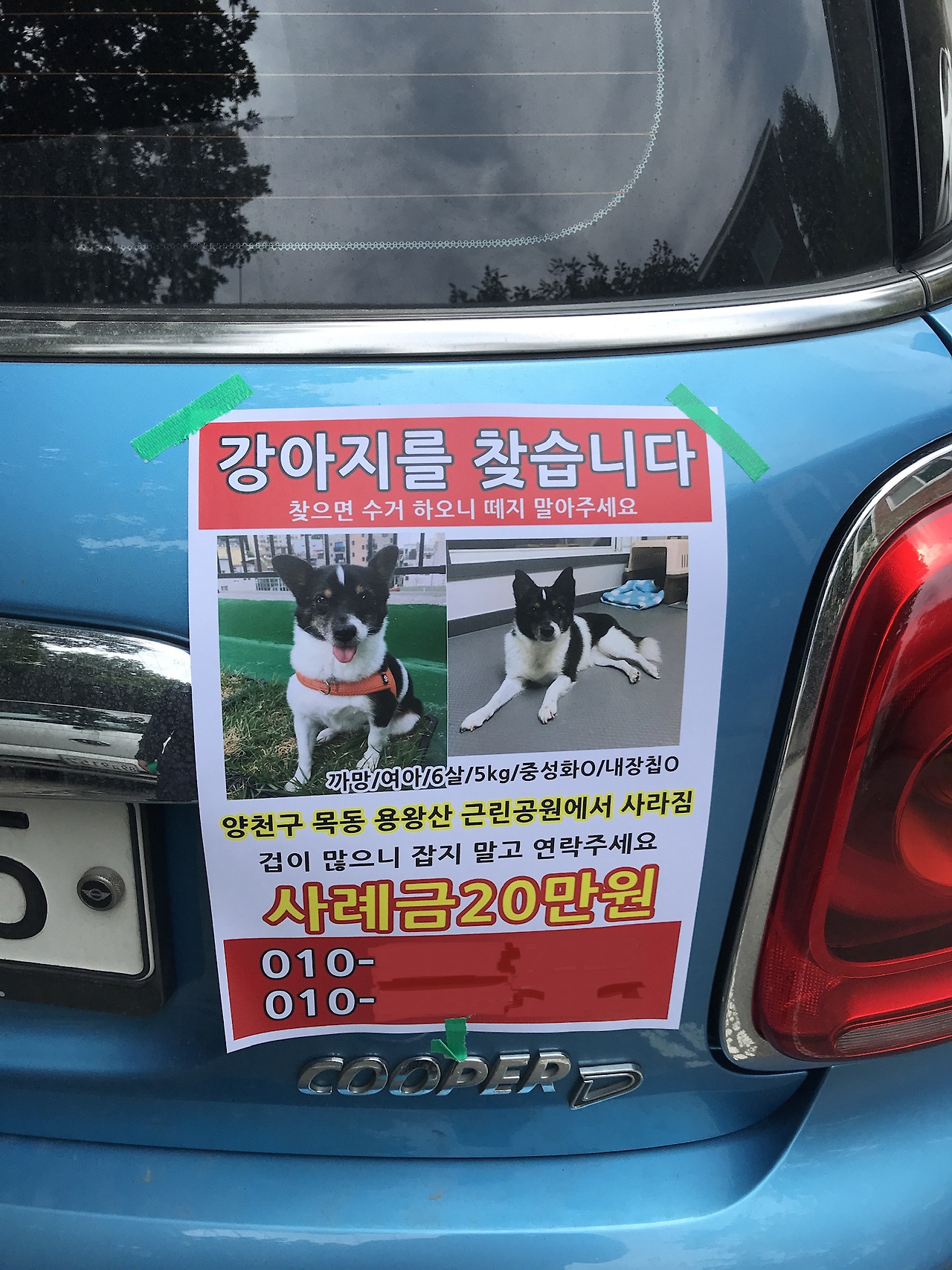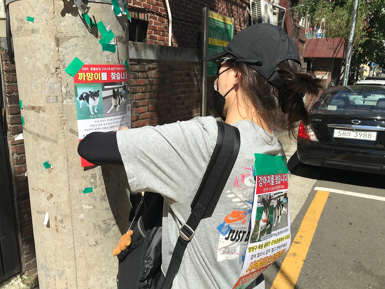 다수의 구조 경험이 있는 단체 회원분들의 조언에 따라 일단 전단지 작업에 들어갔다. 정신이 없을 나와 가족을 위해 빠르게 전단지를 만들어 출력해 와 주신 회원분들의 도움으로 근처 주택가와 용왕산 산책로 주변에서 신속하게 작업을 진행할 수 있었다. 평소 알고 지내던 지인과 까망이를 최초 구조하셨던 분들, 그 밖에 근처에 사시는 회원분들이 밤늦게까지 전단지를 붙여주셨고 한편에선 SNS 및 당근 마켓, 맘 카페와 같은 지역 커뮤니티에 까망이 소식을 끊임없이 공유해 주셨다.