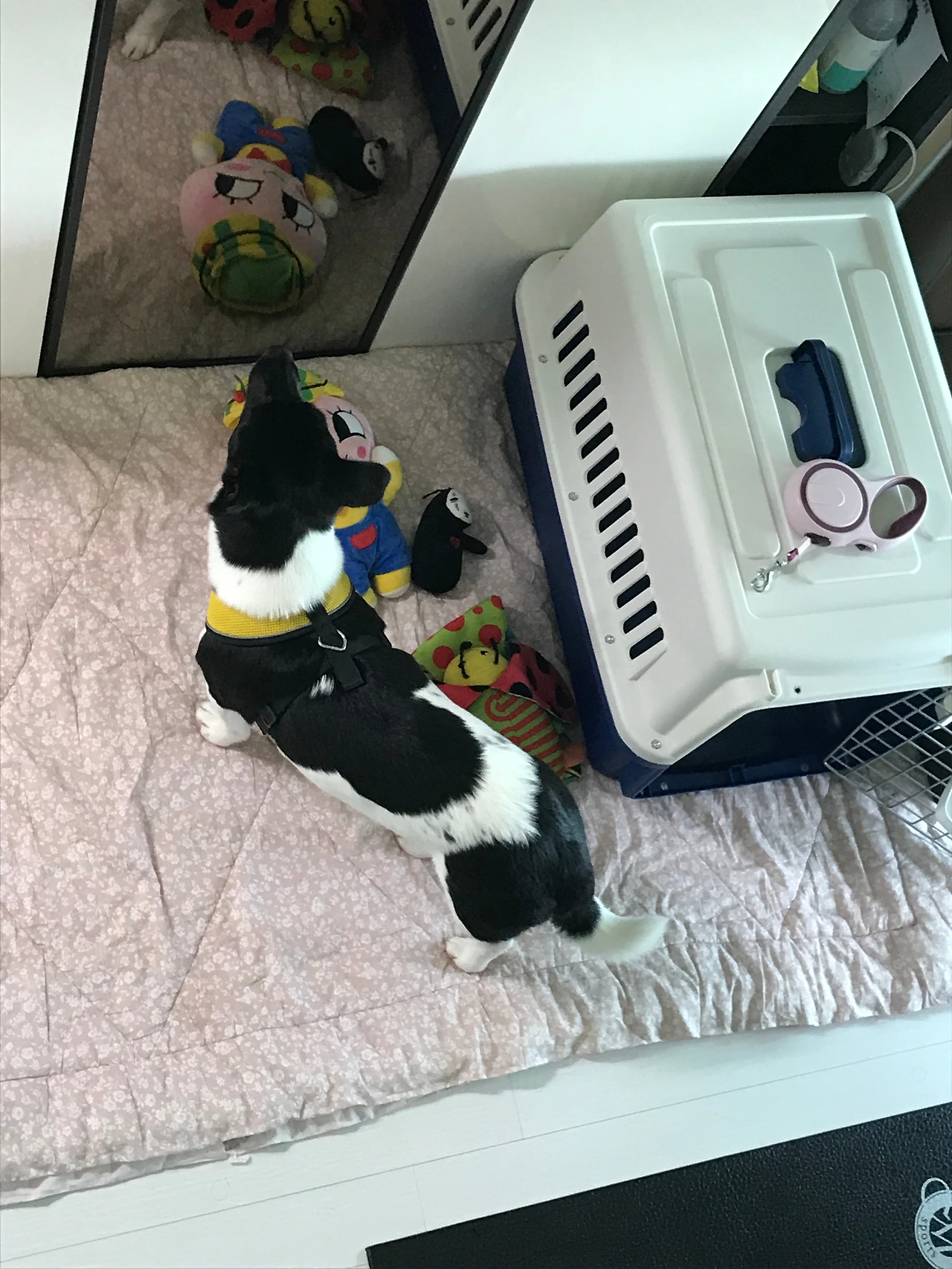 어떤 문장이든 '그 해 여름이었다.'만 붙이면 소설이 된다고 하는데 그 해 여름 오레오와 보낸 시간은 정말 내게 소설 같은 일상이었다. 처음 오레오는 내 손을 쉽게 허락하지 않았다. 그도 그럴 것이 그 짧은 견생에서 벌써 세 번째 낯선 환경에 놓이게 된 것이다. 이전 임시 보호자님의 말대로 매우 소심하고 특히나 남자를 무서워한다고 하니 섣불리 뭔가를 시도하는 건 오히려 위험할 것 같다는 생각이 들었다. 그래서 당분간은 아무것도 시도하지 않고 이 공간에 익숙해질 때까지 기다려줬다. 그렇게 5일쯤 지나자 이제 내가 주변에서 왔다 갔다 해도 별로 신경 쓰지 않는 모습이었다. 이제 터치를 시도할 수 있겠다는 생각에 오레오 옆 바닥에서 생활을 한지 며칠. 손이 물릴 각오를 하고 모르는 척 살짝 손을 뻗어 조금씩 만졌는데 다행히도 피하지 않는다. 그렇게 이틀 정도 시도하자 용기가 생겼다. 이번엔 하네스를 풀어줄 때가 되었다. 처음 올 때 하고 온 하네스를 일주일째 차고 있으니 보는 내가 답답할 지경이었다. 조심스럽게 숨죽여 하네스를 벗겨줬는데 졸리는 마음에 심장이 두근거리고 등골엔 식은땀이 났다. 10일 만에 하네스를 풀자 홀가분해진 오레오는 제법 내가 익숙한지 터치도 어느 정도 받아주었다.