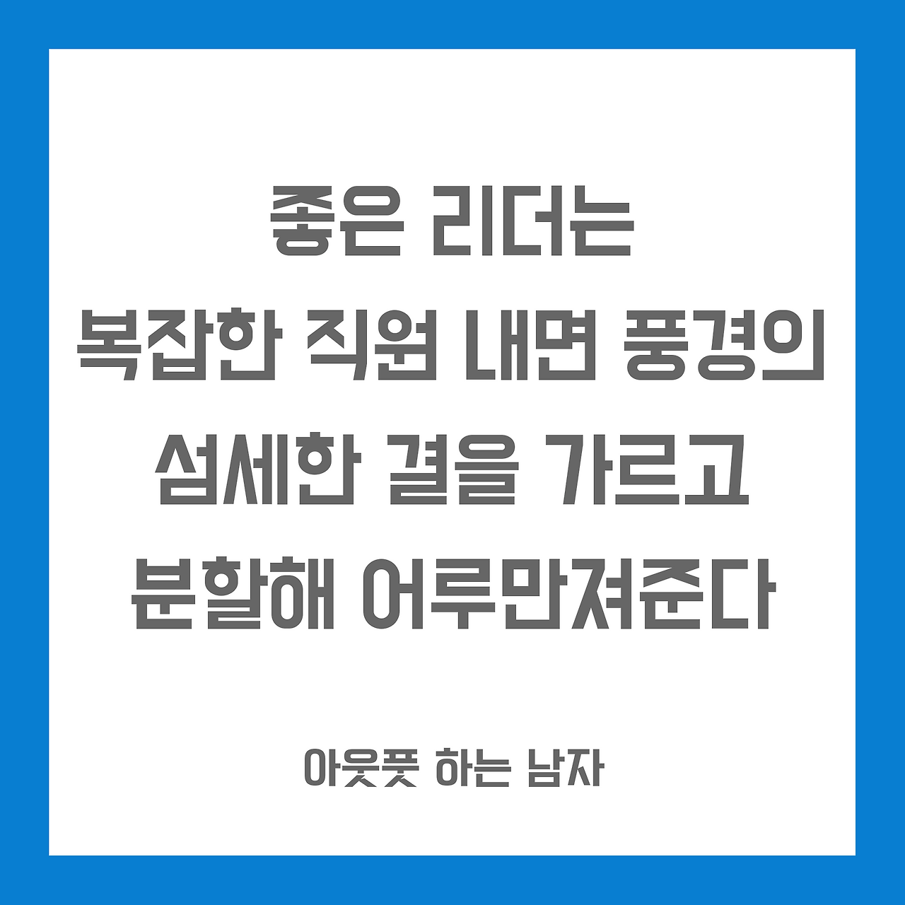 결국, 자신이 빛 나는 사람이 아니라 구성원을 그리고 조직을 빛나게 하는 사람, 그 사람이 바로 리더다.