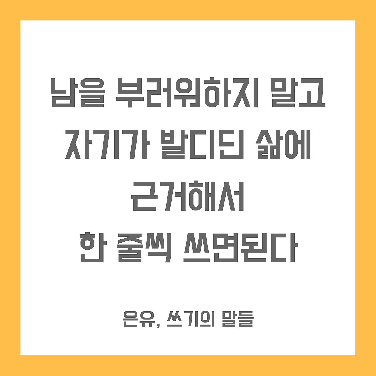 다른 사람들은 재능도 많고 그들의 삶엔 특별한 에피소드도 많다. 평범하디 평범하게 살아온 내 삶에서는 특이한 이야기들을 찾을 수가 없다. 남들에게 전해줄 뛰어난 재능이나 특수한 경험도 없다.