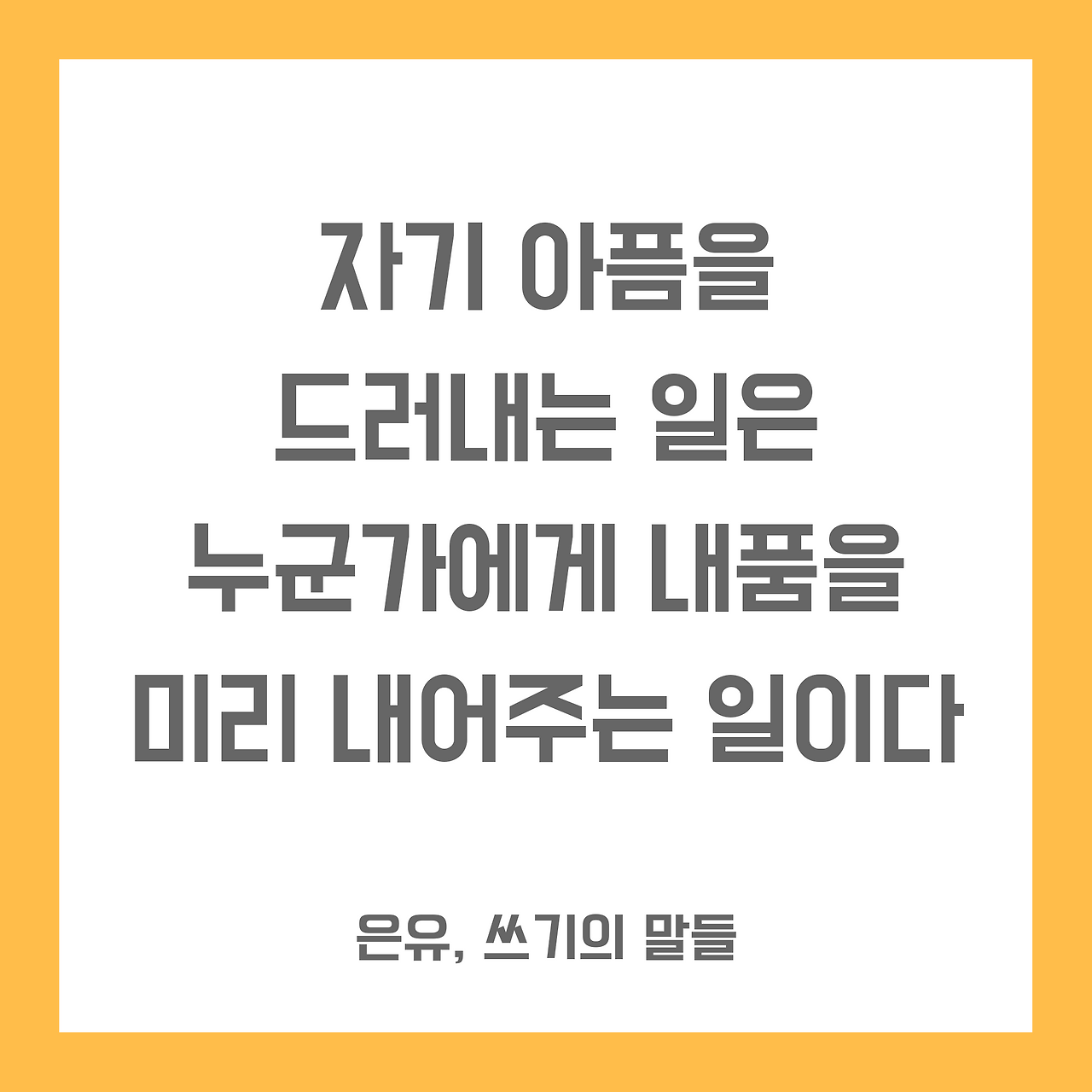 모든 일은 시차를 두고 다른 사람에게 나타난다고 한다. 그래서 자기 아픔을 드러내는 일은 누군가에게 내 품을 미리 내어주는 일이고, 내 시행착오를 드러내는 것은 누군가에게 내 계획을 미리 알려주는 것이다.