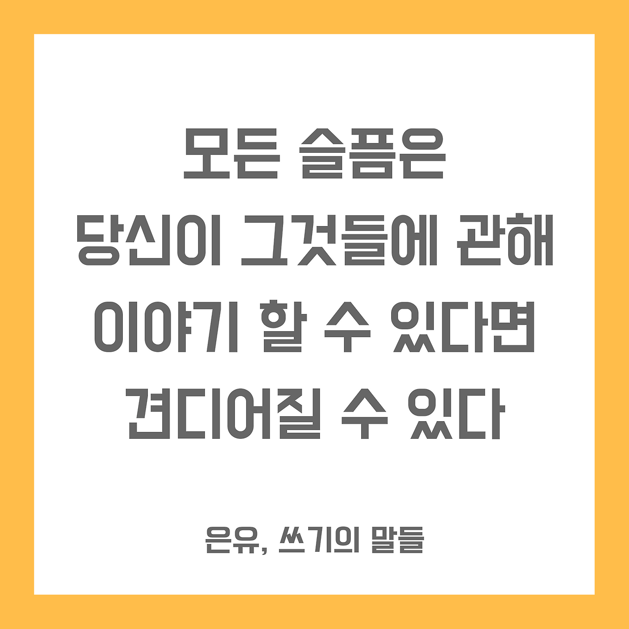 마음속 고통에 관해 이야기할 수 있다는 것은 자신이 그 정체를 알고 있다는 것이고 어느 정도 정돈이 되어 있다는 뜻이다. 삶의 시행착오 또한 마찬가지다. 나의 실패를 당당하게 이야기할 수 있다는 것은 그 안에서 무엇인가는 찾았다는 의미일 수 있다.