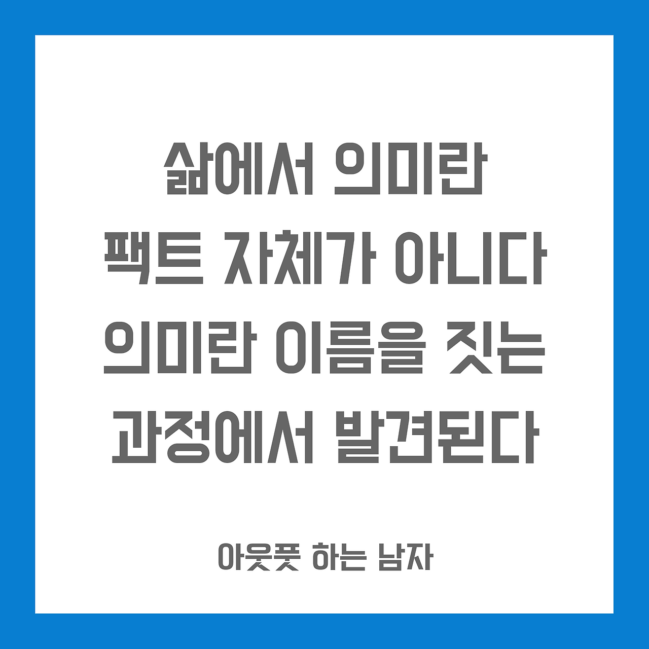 의미란 '이름'을 짓는 과정에서 발견된다. 이름을 불러주기 전에는 하나의 몸짓에 지나지 않던 사람이 이름을 부른 후에는 꽃이 되었다는 김춘수 시인의 말처럼. 또한, 의미란 '관계'를 짓는 과정에서 발견된다. 꽃 밭의 수많은 장미보다 자신과 '관계' 있는 한 송이의 장미가 훨씬 더 소중하다고 말한 생떽쥐베리의 '어린 왕자'의 말처럼.