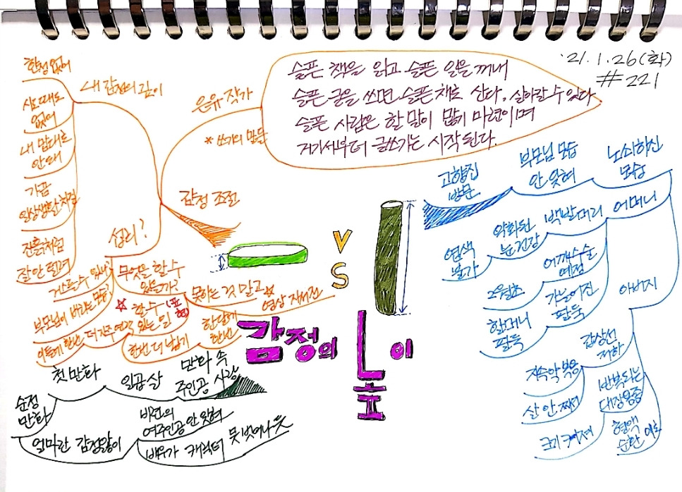 ‘금사빠’(금방 사랑에 빠지는 사람)라 생각했는데 나는 ‘금감빠’(금방 감정에 빠지는 사람)에 가까운 듯하다. 내 감정 골의 깊이를 알 길이 없다. 한번 빠지면 헤어 나오기가 힘들다. 마음이 마음대로 안 되는 경우도 많지만 감정도 마찬가지다. 내 감정이지만 원하는 감정을 선택하기가 여간 어렵지 않다.