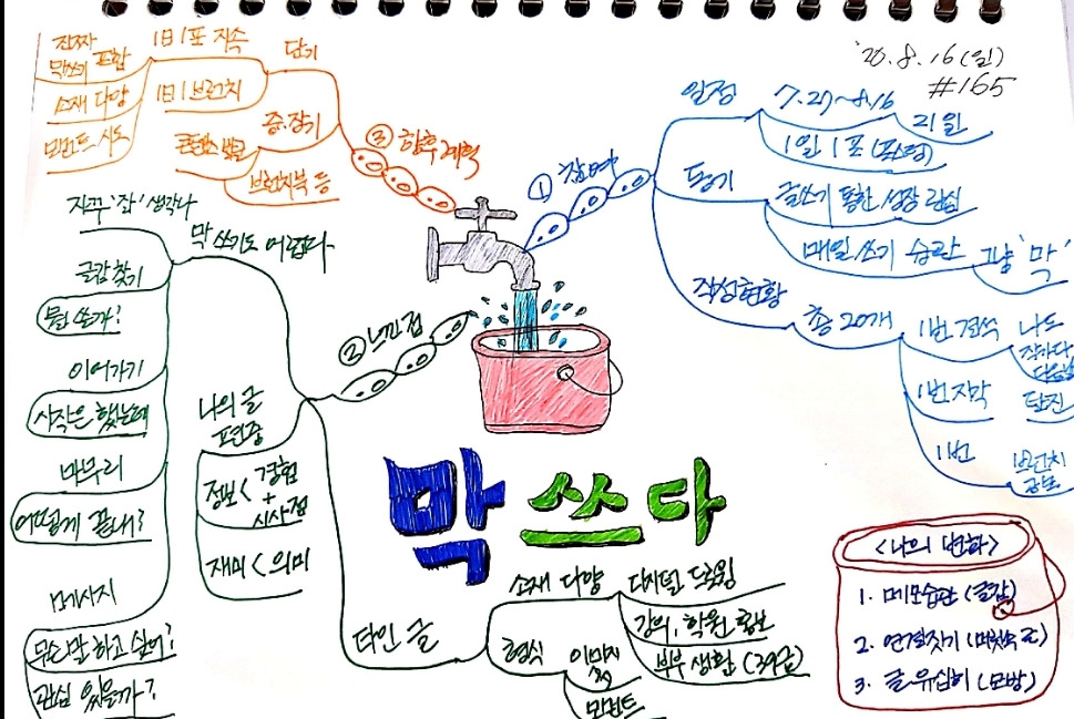 막 쓰기 프로젝트를 통해 가장 크게 달라진 점은 '메모하는 습관'이 생겨다는 것이다. '1일 1 깡'이 아닌 '1일 1 글'이라는 숙제를 위해 항상 안테나를 켜 놓고 생활한다. 그러다 좋은 글감 또는 떠오르는 생각이 있으면 즉시 메모를 한다. 처음에는 하나의 메모장에 메모했지만 메모가 쌓이면서 주제별로 나눠 저장을 하게 되었다. '1일 1 글'은 글을 쓰지 않는 순간에도 나를 '글쓰기 모드'로 전환했다. 글을 읽을 때 제목과 시작을 유심히 보게 됐고 내용보다 어떻게 전개해가는지를 살피게 됐다. 좋은 문장을 찾으면 자연히 줄은 치고 있는 나 자신을 발견했다.