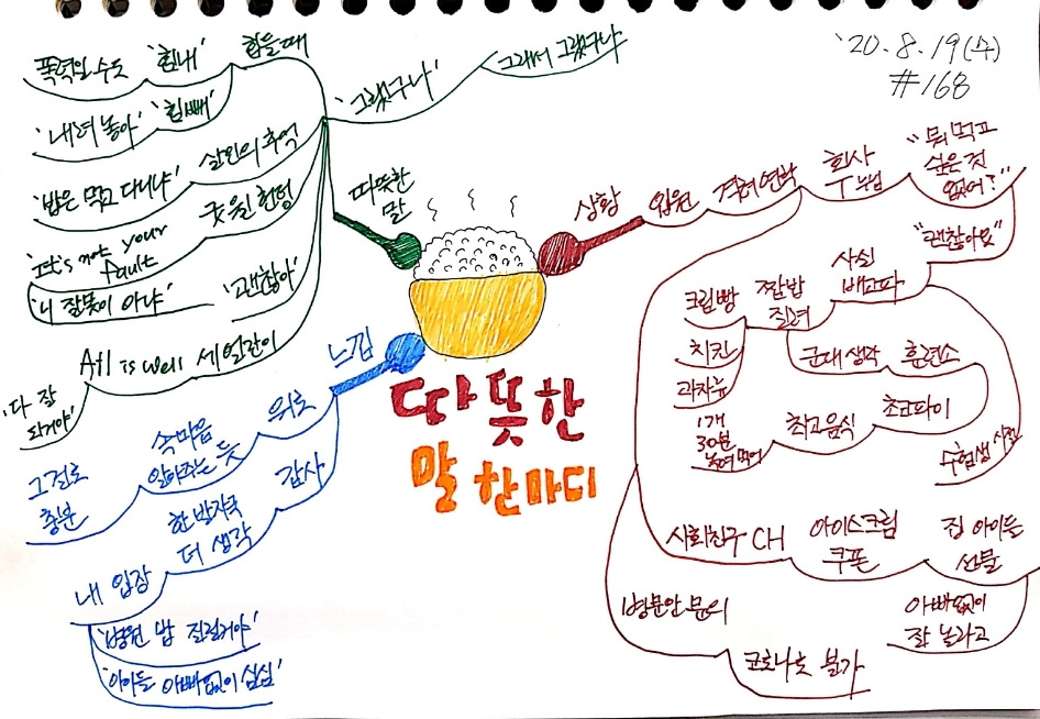 누군가 힘들어할 때 '힘 내'라는 말은 폭력이 될 수도 있다고 한다. 그 사람은 충분히 힘이 든 상황이기 때문에 차라리 '힘 빼'라는 말이 더 도움이 될 수 있다는 것이다. 먹어도 먹어도 배고픈 짬밥을 기다리던 내게 오늘 회사 누님의 카톡은 큰 '위로'가 되었다. '뭐 먹고 싶은 거 없어?'라는 그 한마디는 '병원생활 많이 힘들지? 병원 밥이 맛이 없어. 먹고 나도 배가 고프고. 잘 먹어야 힘내지. 뭐 먹고 싶은 거 없어?'라고 말하며 나를 토닥이는 것 같았다.
