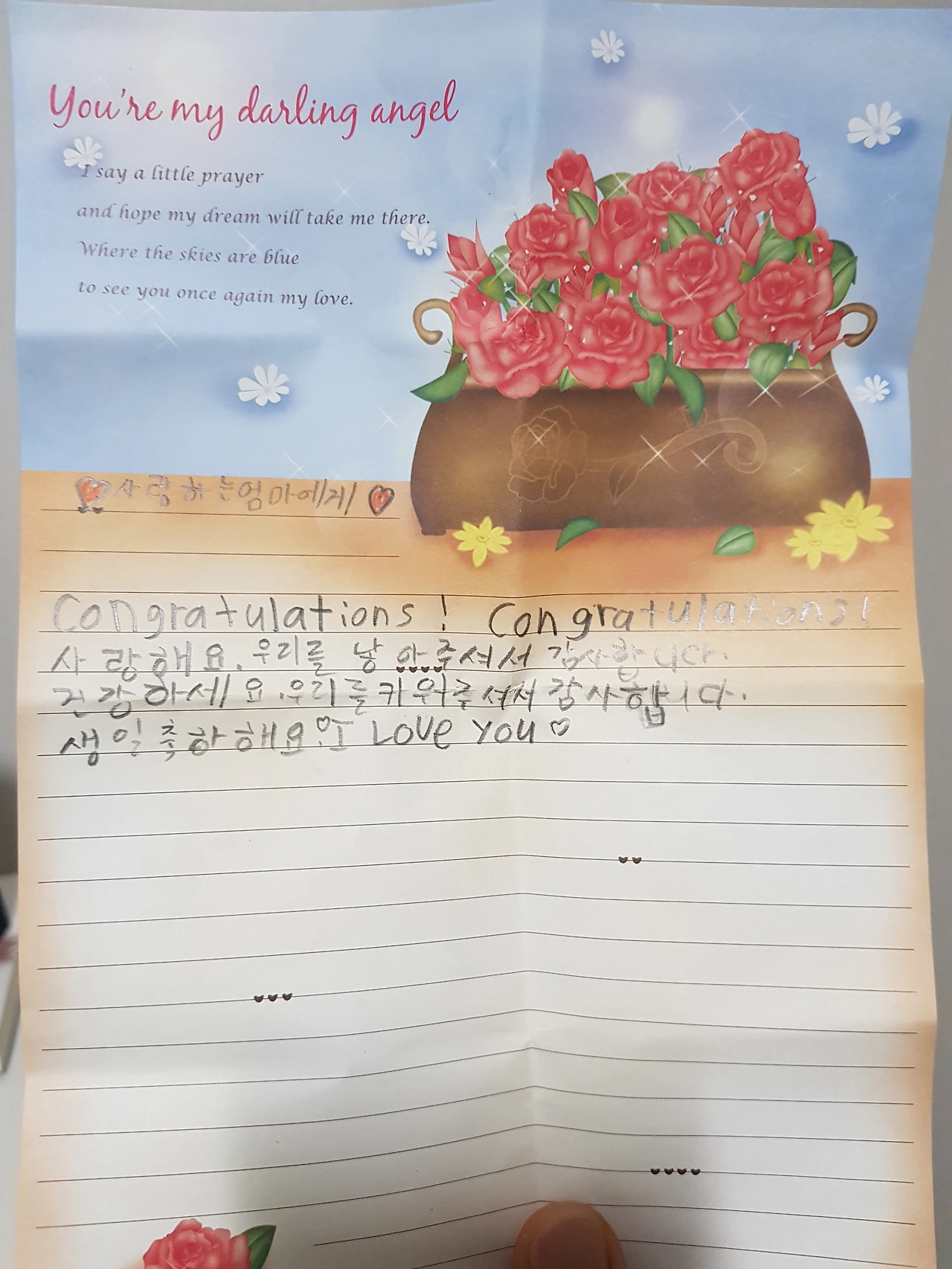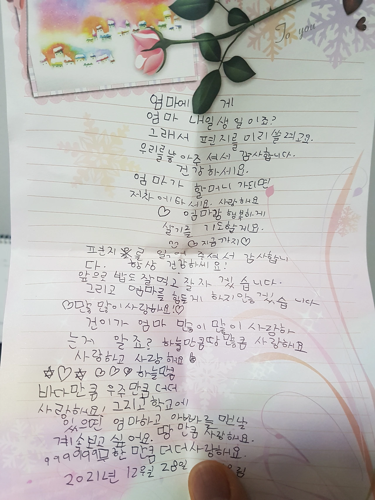 내일 엄마 생일이잖아요. 편지 쓰세요