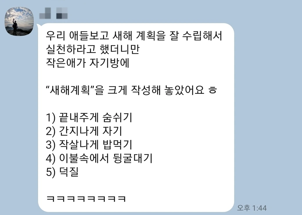 얼마 전 회사 형님이 중2 딸의 새해 계획을 카톡방에 공유해줬습니다.