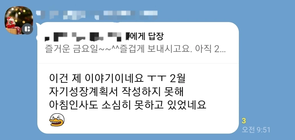 새해를 맞아 시작한 월별 계획 작성 모임. 매월 계획을 단톡방에 공유하고 계획과 관련한 블로그 글들을 주 2편씩 공유하기로 했습니다. 새해는 시작되었고, 2월도 한 주가 다 지나도록 2월 계획을 세우지 못했습니다. 숙제 안 한 학생이 학교에 가는 것이 꺼려지는 마음처럼 단톡방에 글도 못 남기고 곁눈질만 하고 있던 차였습니다. 그런데 내 마음을 대변하는 한 마디에 정신이 번쩍 들었습니다.