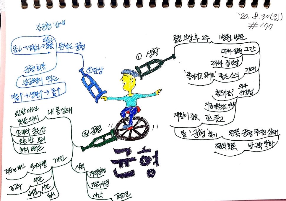 몸의 균형이 깨지니 생활의 균형도 깨진 상태였다. 회사를 한 달 넘게 쉬어야 했고, 집에서도 아빠로서 남편으로서 역할을 못한 채 병자로서의 역할에만 충실해야 했다. 생활의 균형이 깨지니 마음의 균형에도 금이 가고 있었다. 오늘 의사 선생님의 말씀은 내 상황의 본질이 무엇인지를 생각하게 만들었다.
