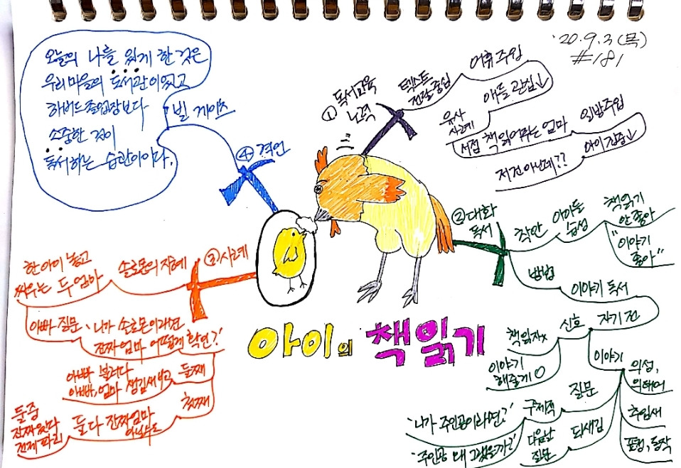 책은 생각을 이끌어 내는 도구다. 아이들은 아직 그 도구를 사용하는 방법에 익숙하지 않을 뿐이고. 책을 읽는 방법은 눈으로 읽는 목독도 있지만 대화와 이야기를 통해 읽어가는 방법도 있다. 아이들이 어른들의 책 읽기 방식에 익숙해지기 전까지는 아이들의 책 읽기 방식을 부모가 존중해주 건 어떨까?