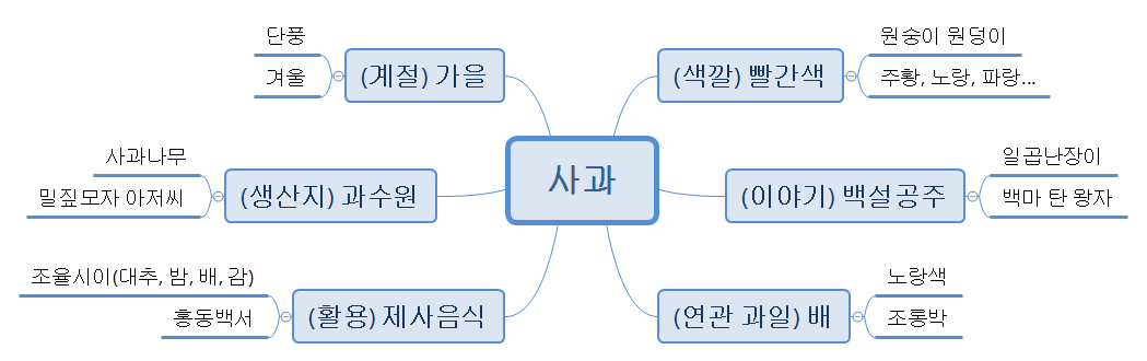 예를 들어, ‘사과’를 하나 떠올려 보자. ‘사과 – 맛있다 – 마트 가서 사 먹어야지.’ 뇌는 이렇게 순차적으로 하나씩 사고하지 않는다. ‘사과'를 생각하면 순간적으로 '빨간색, 백설공주, 배, 제사음식, 과수원, 가을’ 등 연관된 생각들이 동시다발적으로 떠오른다. 그리고 각 단어별로 생각의 가지를 뻗는다. 빨간색-원숭이 엉덩이... 백성공주-일곱 난쟁이... 배-노란색... 뇌 속에서 생각이 뻗어나가는 과정은 마치 하나의 광물이 사방으로 빛을 발사하는 것과 같다. 이것은 생각을 정리하고 관리하고 새로운 아이디어를 발굴하는 데 중요한 단서를 제공한다.