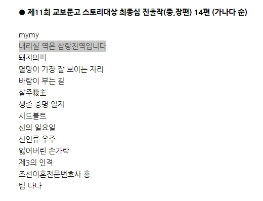 작년에 마무리된 소설을 제11회 교보문고 스토리대상 공모전에 공모했다. 그리고 최종심 선정작으로 올랐다는 연락을 받게 됐다.