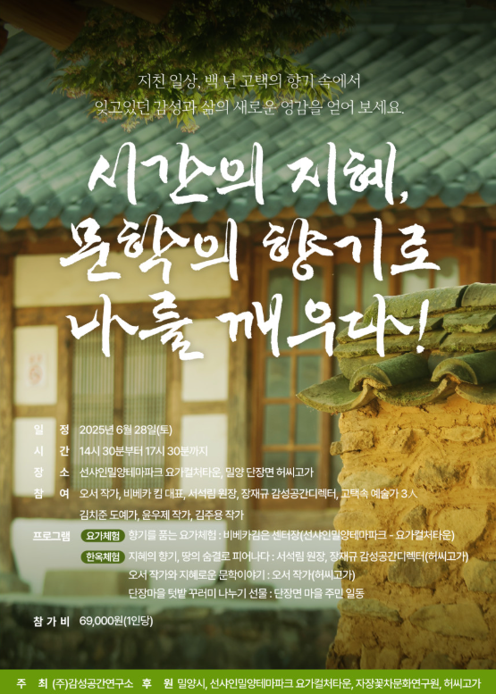 밀양시 관광과장님으로부터 전화가 왔다. 밀양에 있는 고택을 개조해 문화 공간으로 만들려고 한다고. 그 프로그램에 내가 함께해 줄 수 있느냐고. 난 무슨 프로그램인지 자세히 듣기도 전에 설레고 있었다. 내가 시에서 후원하는 프로그램에 참여하게 되다니!