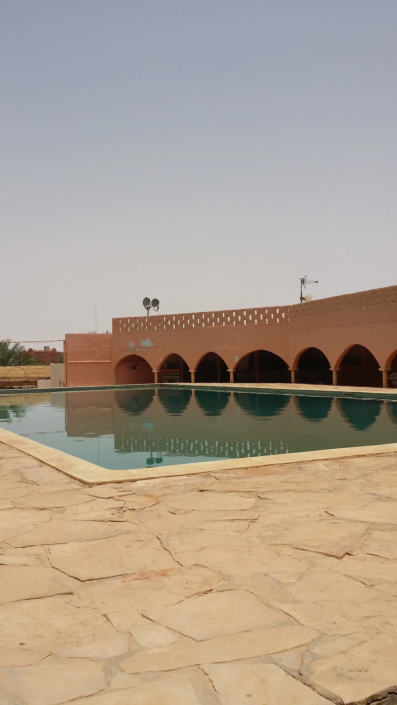안전벨트를 맸는데도 이쪽저쪽 덜컹거리는 지프차 안에서, 라디오 속에서는 아랍어인지 베르베르 어인지 알 수 없는 노랫소리가 흘러나왔다. 붉은빛 사막이며, 붉은 벽돌 건물이며 이국적인 풍경이 내내 눈을 사로잡았다. 프랑스어를 하니 내가 사하라 사막에도 와보는구나 만감이 교차하던 찰나 호텔에 도착했다.