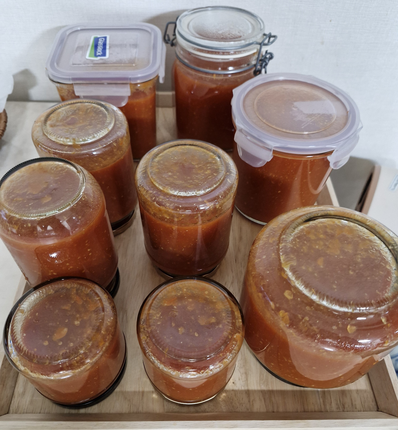 전기밥솥을 이용해서 토마토퓌레를 잔뜩 만들어 냉장고에 쟁여두었다. 지난번 거는 당도도 있어서인지 그것만 먹어도 참 좋았다. 그런데 이번에는 씁쓰레한 맛이 나서 잘 먹어지지 않는다. 냉장고 정리를 하다 보니 언제부터인지 자리를 차지해 온 파스타면이 보였다. 한번 즈음 맛있게 먹었던 적이 있어서 집에서 해보자는 생각으로 면을 구입한 것 같다. 요리법을 제대로 파악하지도 않고 아마도 국수 삶듯이 시도했었던 기억이 난다. 실패 후 두 번 다시 시도할 맘이 내키지 않았던 것은 그 후 모임에서 파스타를 먹으면 늘 소화가 안 되었던 것 같다. 파스타 면이 새것도 아니니 누구를 줄 수도 없고, 유통기한은 아직 몇 달 남았지만 버려야겠다는 생각이 들었다. 그래도 마지막으로 다시 시도해보고 싶은 맘이 스멀스멀 올라와서 1시간 이상동안 메모도 하면서 여러 유튜브 채널을 고정하고 보았다. 유트버들이 보여주는 것은 다른 요리보다 쉬워 보이고 맛도 좋아 보였다. 집에 있는 재료를 총동원하여 맛이 날 것 같은 것은 추가해서 넣고 시도했더니 의외로 맛있었다. 면도 충분히 삶아져서 꼭꼭 씹어먹으니 소화도 잘되었다. 우선 냉장고 가득한 씁쓰레한 토마토퓌레와 파스타면이 다 소진할 때까지, 몇 번은 더 만들어 먹고 싶어 져서 다행이다. 어쩌면 자신감이 붙어서 누군가를 초청할 때 토마토 파스타도 대접하게 될 수도 있겠다는 야심 찬 기대까지 생겼다.