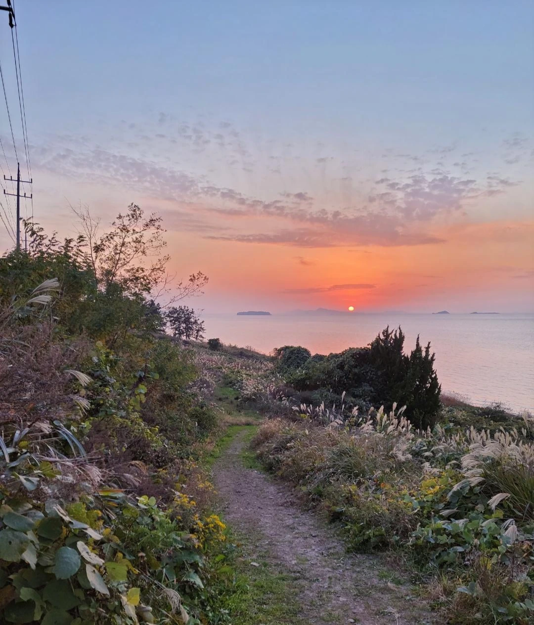 동생이 본체와 트레일러를 분리하고, 트레일러 수평을 맞추고, 내부를 사용하기 편하게 세팅하는 데에 또다시 한참의 시간이 흘렀다. 해가 저물고 있었다. 해는 수평선 가까이 이르자, 빠른 속도로 떨어지지 시작했다, 일몰을 놓칠세라 주위에 차들이 모여들고 사람들은 해지기 직전의 아름다움을 카메라에 담기 바빴다. 드디어 카라반에 앉아, 커피를 앞에 두고 코스모스와 갈대 너머로 해 저무는 바다를 바라보니 그동안 녹슨 줄도 모르고 살았던 가슴속이 벌렁거렸다. 노을은 해가 수평선 너머로 완전히 사라지자 더욱 붉게 타올랐다.