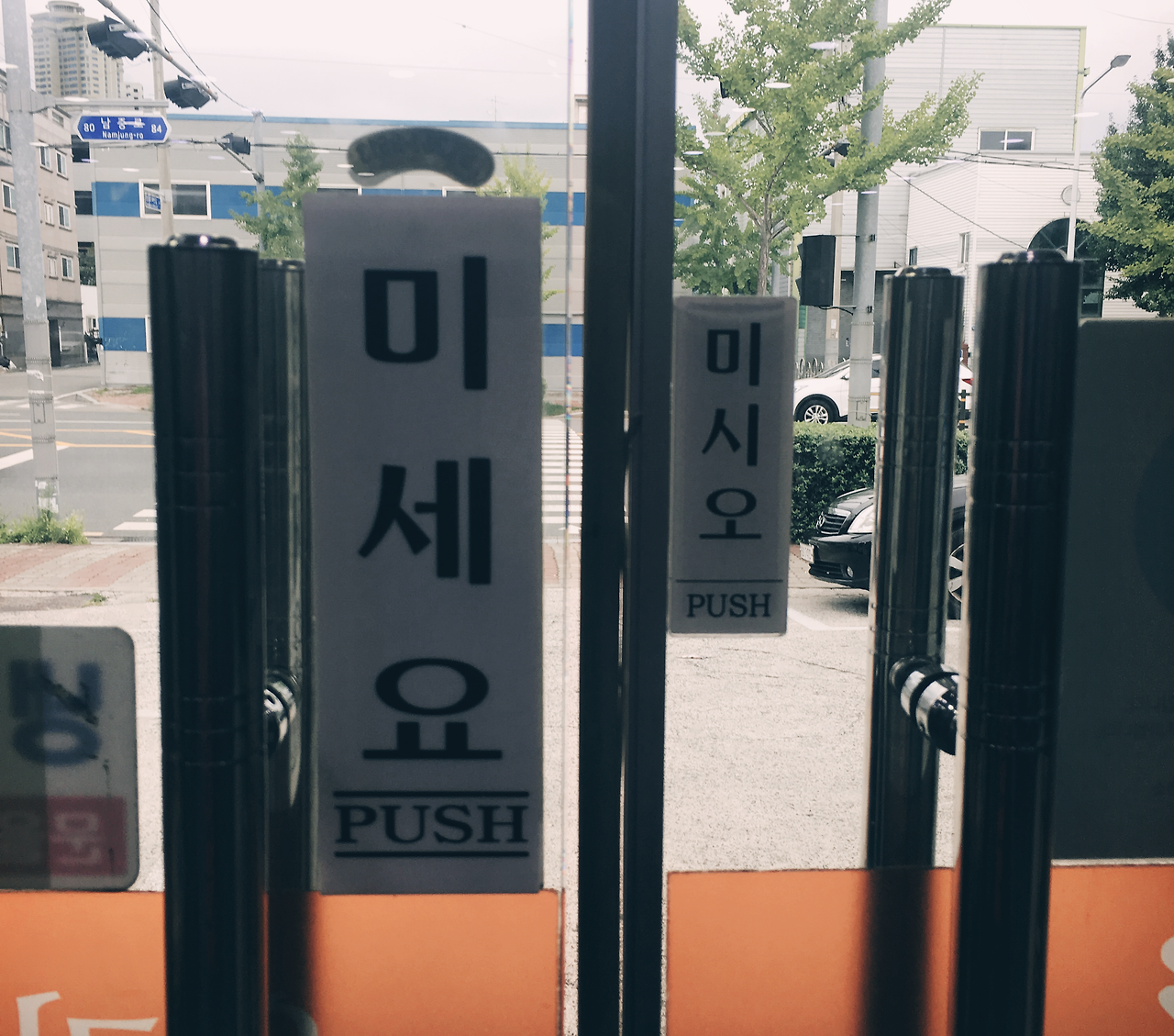 밀어야 하나 당겨야 하나 고민을 하다가 ‘미세요’란 표시가 있는 쪽 문을 밀었습니다.
