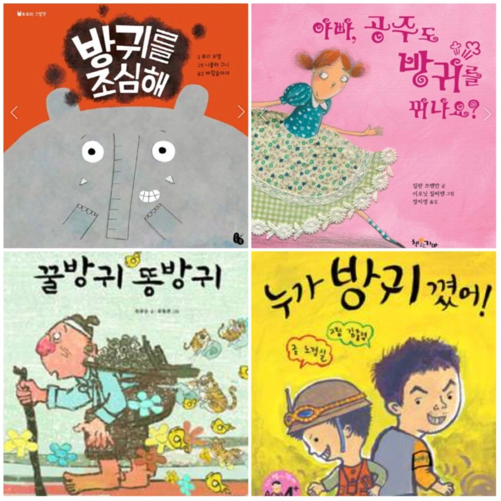 자기 몸에서 나오는 다른 소리가 신기해서인지, 이쁜 몸에서 나오는 냄새가 기가 막혀서인지 가르쳐 주지 않아도 방귀는 아이들 입을 하루에도 여러 번 오르락 내리락 합니다. 방귀를 소재로 한 다양한 동화책들만 봐도 방귀가 일상에 친숙하다는 반증이겠죠?