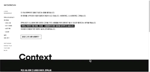 필자는 부산에서 199,000원 멤버십 비용(4개월)으로 약 150명의 정규 멤버가 있었던, 독서기반 커뮤니티 서비스 '컨텍스트'의 공동 대표였습니다. 5년간 운영을 했던 이 서비스는 현재 코로나로 인해 휴업 상태이고, 필자는 공동 대표에서 이름을 뺀 상태입니다.