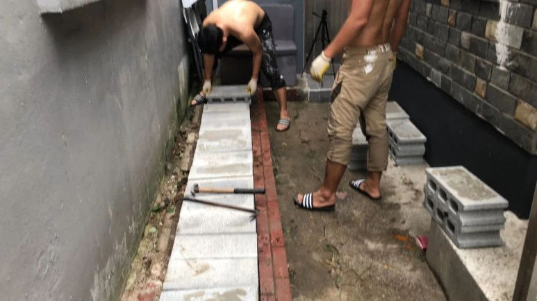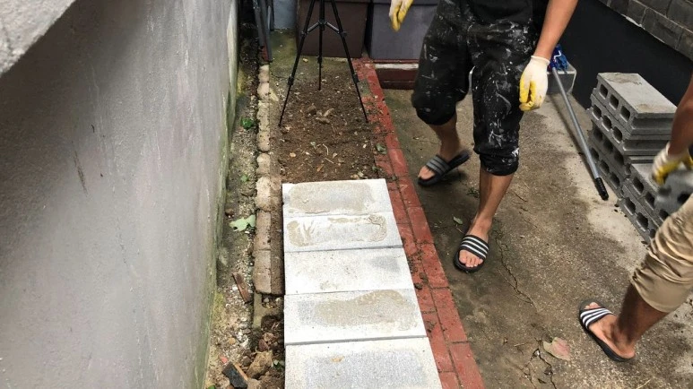 잡초들을 다 뽑고, 보루꾸(회색 큰 벽돌)로