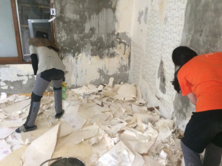 벽지를 엄청나게 뜯어내고,