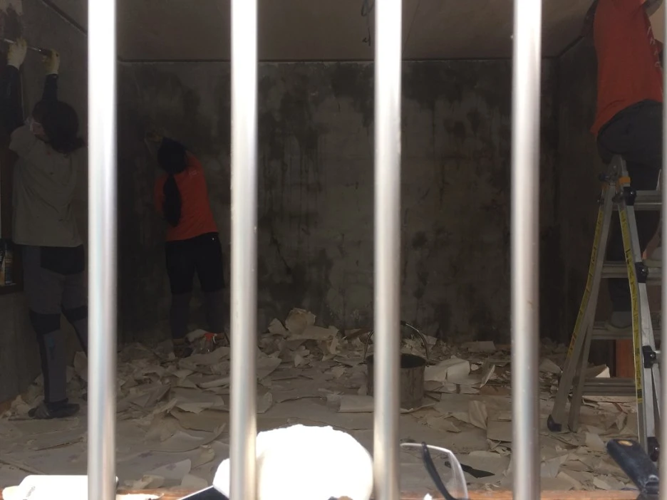 : 오래된 건물이라, 벽돌을 쌓아 올린 건물이었어요. 구멍이 송송 난 데가 있고 고르지 못해서 보수해 줍니다.