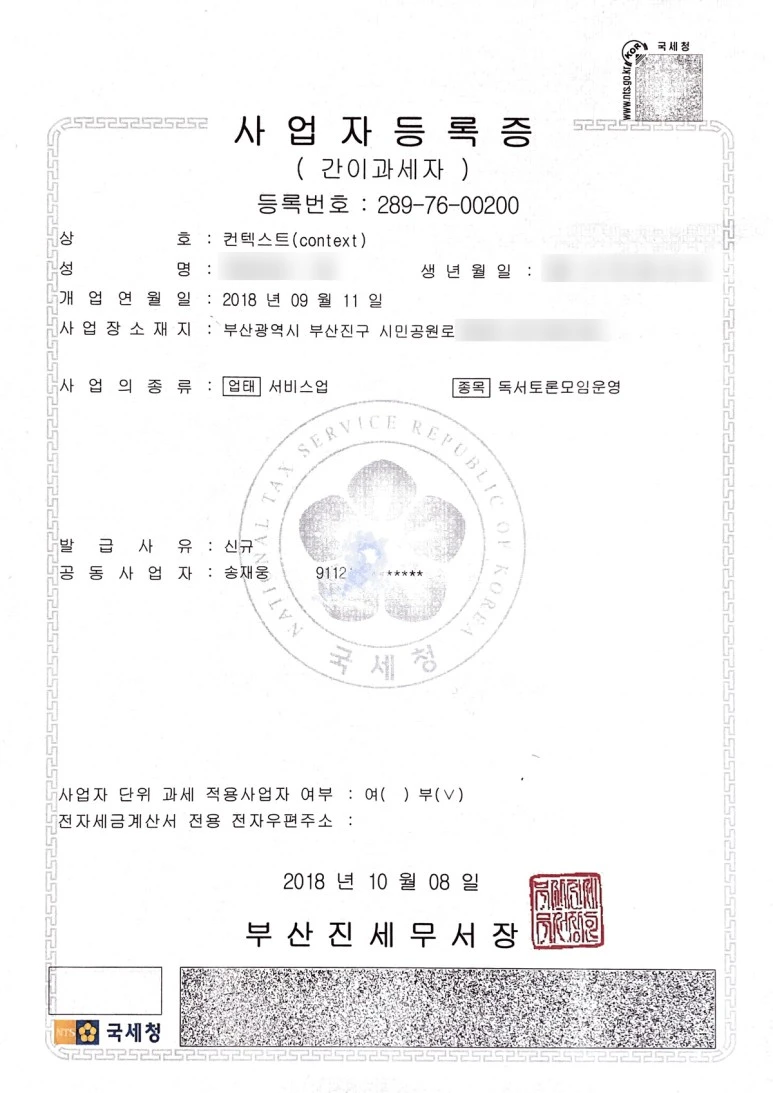 - 사업자 등록