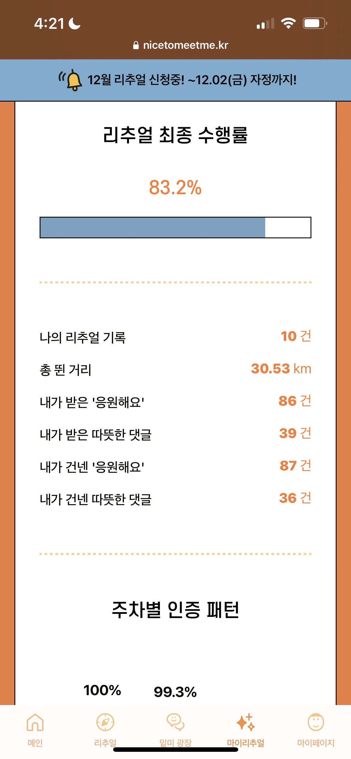 현재 12월 <일주일 12km 달리기> 리추얼 모임 모집 중이다. @nicetomeetme.kr 신청할 수 있고, 신청하면 나와 함께 타이탄의 도구 중 하나를 공유하게 된다. 새해를 앞두고 스스로에게 선물하기 좋은, 값 매길 수 없는 명품이 될 거다
