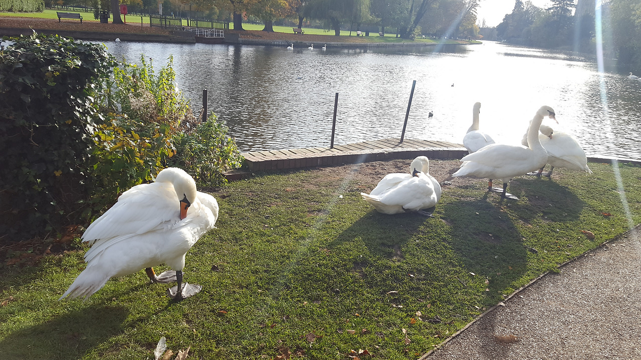 강 위를 유유히 헤엄치는 백조들과 코 앞에서 기지개를 켜는 그들의 모습이 가장 먼저, 그곳이 틀림없는 영국임을 말해준다.