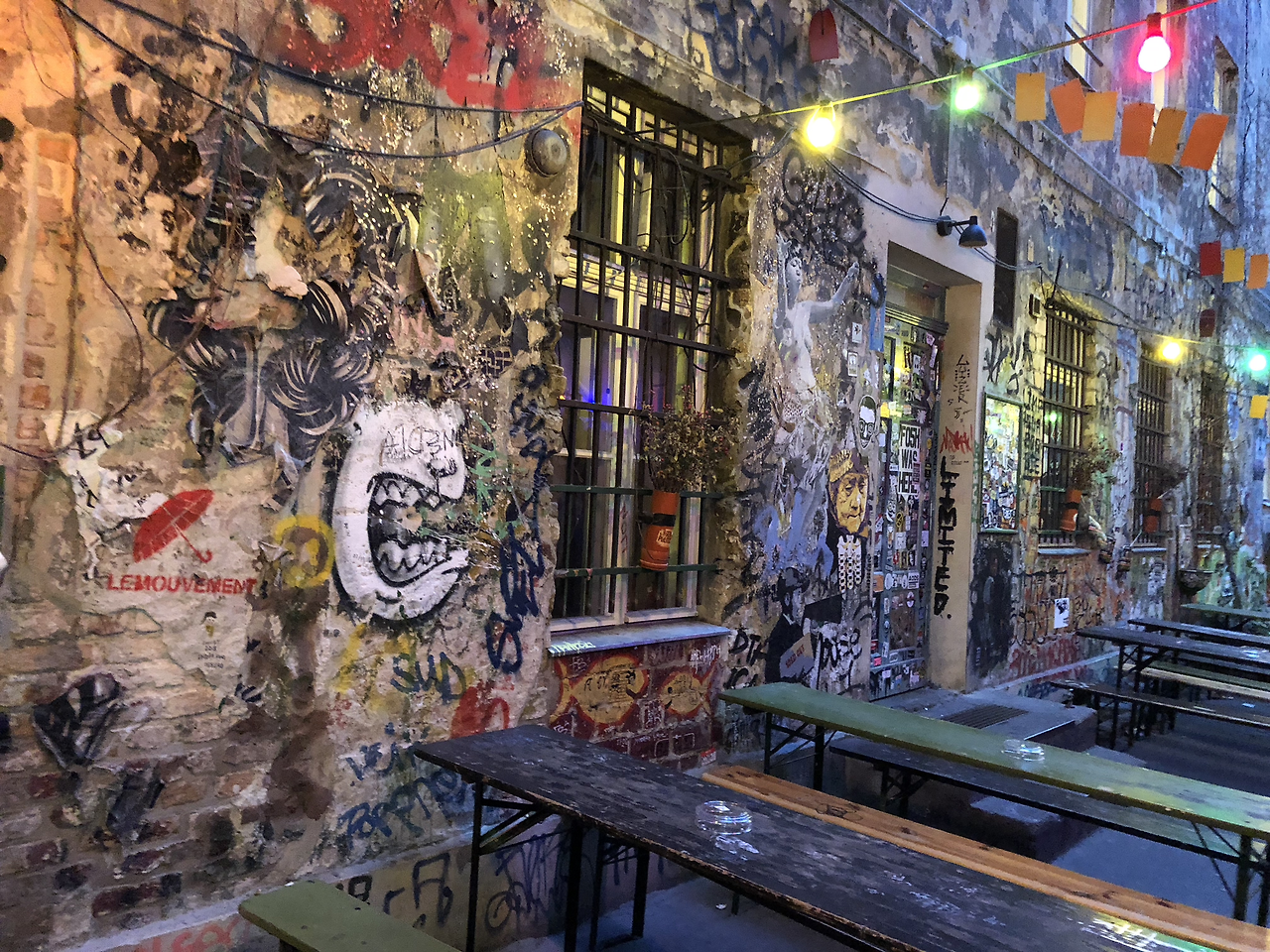그러나 가난한 도시인 베를린은 당장 비어 버린 공간을 개발할 여력이 없다 보니 빈 건물들은 노숙자나 마약중독자들이 차지하는 경우가 많아졌고, 가난한 문화예술인들의 작업실이나 거주공간이 되는 경우가 많아졌다. 스쾃(Squat)이라 하여 일종의 점거 운동도 활발하게 이루어져 도시재생으로 유명해진 공간들은 예외없이 스쾃운동(squatting)으로 점거하고 있던 사람들 때문에 옛 건물이 남아있는 경우들이 많다. 하케셔막트역의 하케셔회페(Hackescher Höfe)라는 건물도 100년이 넘은 건물인데, 이 곳도 마찬가지여서 스쾃운동으로 점거하고 있던 사람들 때문에 개발이 이루어지지 못했으나, 지금은 로자룩셈부르그 거리(Rosa-Luxemburg-Straße)로까지 이어지며 서울의 가로수길 같은 공간으로 남았다. 이곳은 현지 디자이너들의 옷과 다양한 편집샵과 분위기 좋은 카페와 음식점들이 자리잡고 있어 젊은 사람들과 관광객들의 발길을 이어지게 만들고 있다. 스쾃운동의 성지같은 타할레스(Kunsthaus Tachele)와 더불어 이 공간에도 그 흔적이 그대로 남아 있는데, 골목길에 남아 있는 그래피티(Graffiti)들을 보러 오는 사람들로 언제나 발 디딜 틈이 없다. 개인적으로도 무척 좋아하는 공간이어서 자주 가는 편이기도 하다.