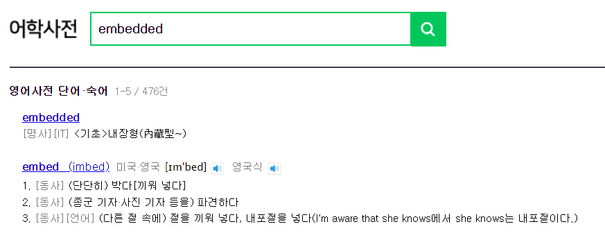 임베디드라는 말은 '내장형'이라는 의미의 영어이다.