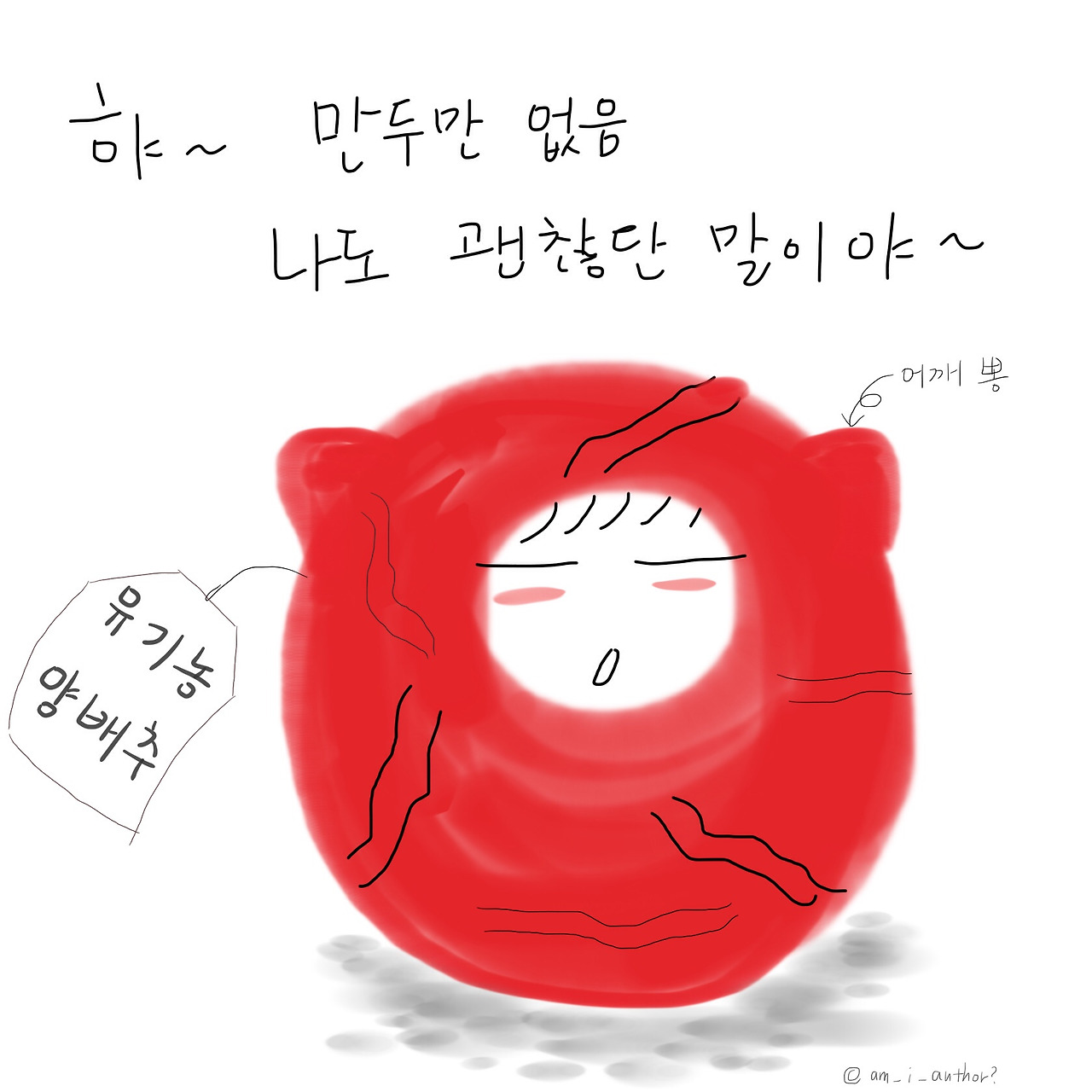 대다수의 만두 같은 비교대상들은 따지고 보면 편집된 복합체다. 수많은 재료로 속을 채우고 깔끔한 만두피로 예쁘게 싼, 맛깔스럽게 편집된 복합체. 우리는 이런 편집된 이미지와 비교를 한다. 맛이 없을 수가 없다. 맛있으라고 그 번잡하고 힘든 과정을 거쳐 만들어진 거니까. 하지만 터질 것 같은 만두의 속사정은 모르고 잘 어울리는 맛난 재료만을 넣고 마지막을 예쁘게 장식한 그들과 자꾸 비교한다. 있는 그대로도 아삭하고 순수하게 달콤한 자신도 충분히 훌륭한데도 말이다.