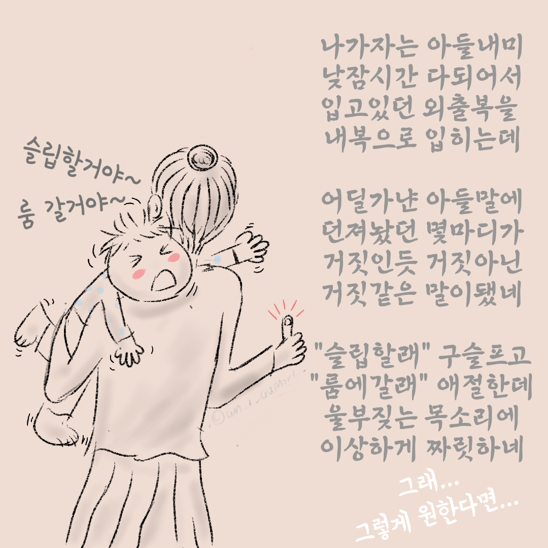 금세 잠든 아들에게 심심한 위로와 "풋"을 보낸다.