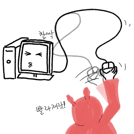 "컴퓨터가 느릴 땐 마우스를 돌리면 빨라진대요!"