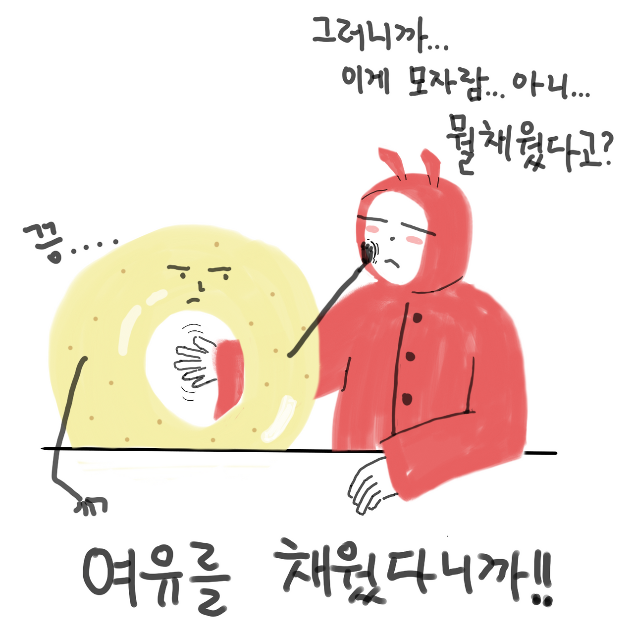 자꾸 속이 익지 않고 겉만 타고 있다 생각된다면, 너무 꽉 채워진 것일지도 모른다. 조금은 덜어 내도 괜찮다. 조금 부족하고 허전해도 괜찮다. 항상 비어있던 주머니와 자주 공허했던 뱃속을 채워준, 가운데는 뻥 뚫렸지만 맛은 꽉 찬 도넛처럼 질로 승부해보는 거다.
