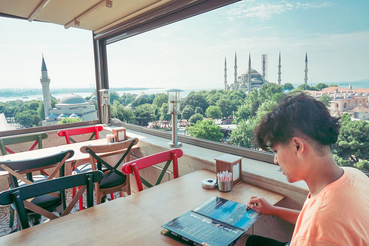 셀추크에서 야간 버스를 타고 도착한 이스탄불. 우연히 들어간 그랜드카페. 따뜻한 터키쉬 커피와 퀴네페를 먹으며 블루모스크를 보던 그 시간을 잊을 수 없다. 너무 이른 시간이라 다른 손님 없이 우리끼리만 있다는 사실이 즐거웠다.