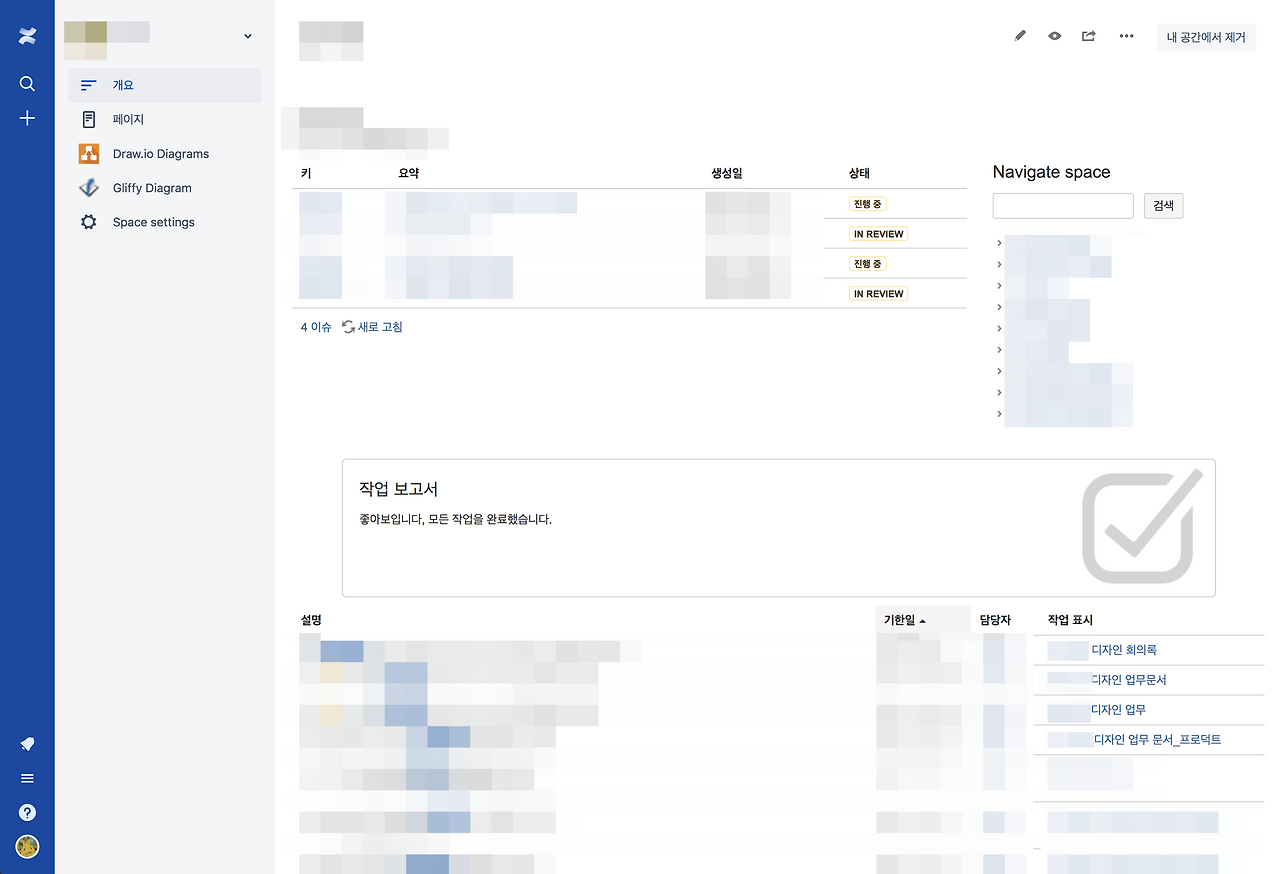 그래서 매일매일 아틀라시안 디자인에 놀라며 즐겁게 위키 문서를 작성했다. 또 좋은 점은 지라와 컨플루언스가 너무 잘 연동된다는 것인데, 지라에 등록해놓은 업무를 내 홈에 Jira Issue filter로 등록해놓고 현황판처럼 공유할 수 있다는 점이다. 내가 지금 어떤 일을 하고 있는지 굳이 물어보지 않아도 알 수 있게 하는 것이 협업에서 중요하다고 생각한다. 서로에 대한 신뢰가 바탕이 되었을 때 재택근무, 탄력근무제, 자율출퇴근, 휴가 등이 껄끄럽지 않게 사용되니까. 신뢰의 기반은 투명한 공유에 있다고 믿는다.