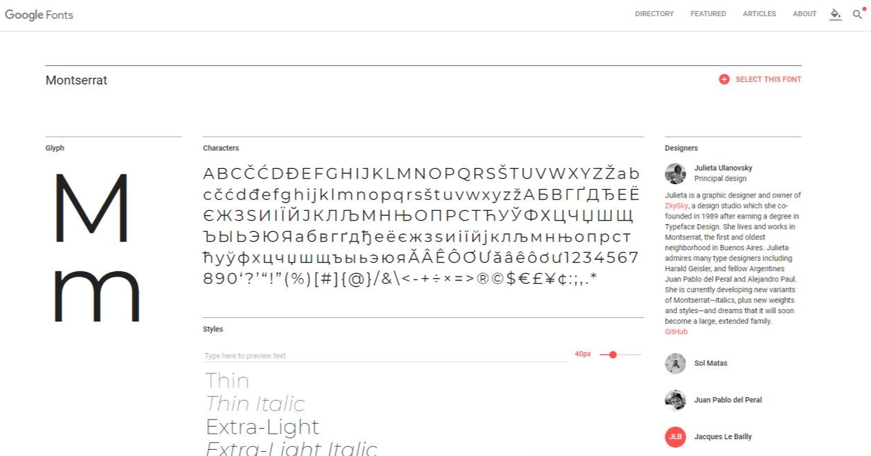 사용할 서체를 골랐다면 실제로 구매해보거나 데모 버전을 사용해본다. 직접 해보는 것보다 좋은 방법은 없다. 구글 폰트는 각종 웹사이트 플러그인으로도 많이 나와있기 때문에 코드 작성할 줄 모르는 사람들도 쉽게 쓸 수 있다. 예를 들면 워드프레스에 구글 폰트를 불러오는 플러그인이 굉장히 많아서 어떤 폰트 고를지만 생각해두면 바로바로 불러다 쓸 수 있다. 요새는 한글 폰트도 조금 들어와있어서 더욱 활용도가 높다.