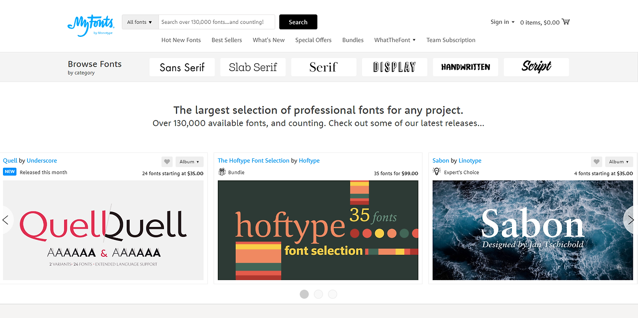 카테고리별로, 두께, 가로폭, 언어별로 검색해볼 수 있어서 좋고 컬러와 사이즈 등을 자유롭게 테스트해볼 수 있다. 나는 자족구성이 많은 서체, 타이틀용 서체, 스크립트 서체 등을 검색해보곤 하는데, 워낙 사이트 구축이 미려하게 잘 되어 있어서 들어가는 것만으로도 기분이 좋아진다.