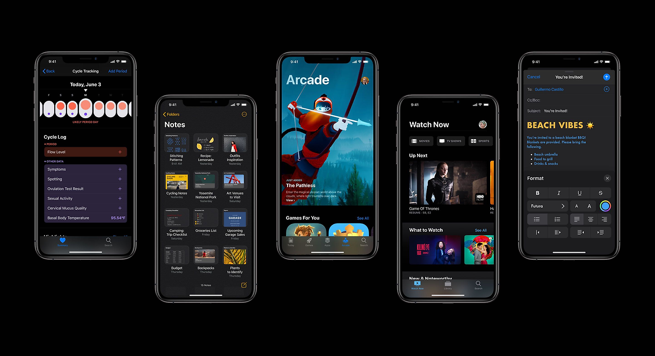 OS Mojave 사용자라면 공감할 수 있을 기능 중 하나로 다이나믹 월페이퍼가 있다. 맥 바탕화면이 시간대에 따라 변화하는 것인데, 아주 작은 인터렉션일 수 있으나 사용자의 입장에선 은근히 감동으로 다가온다. 일출-일몰에 따라 변하는 나의 공간이라니. 애플은 전제품에 다크 테마를 적용해 기기 간 일관성을 아주 잘 구축하고 있다.