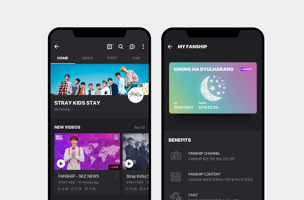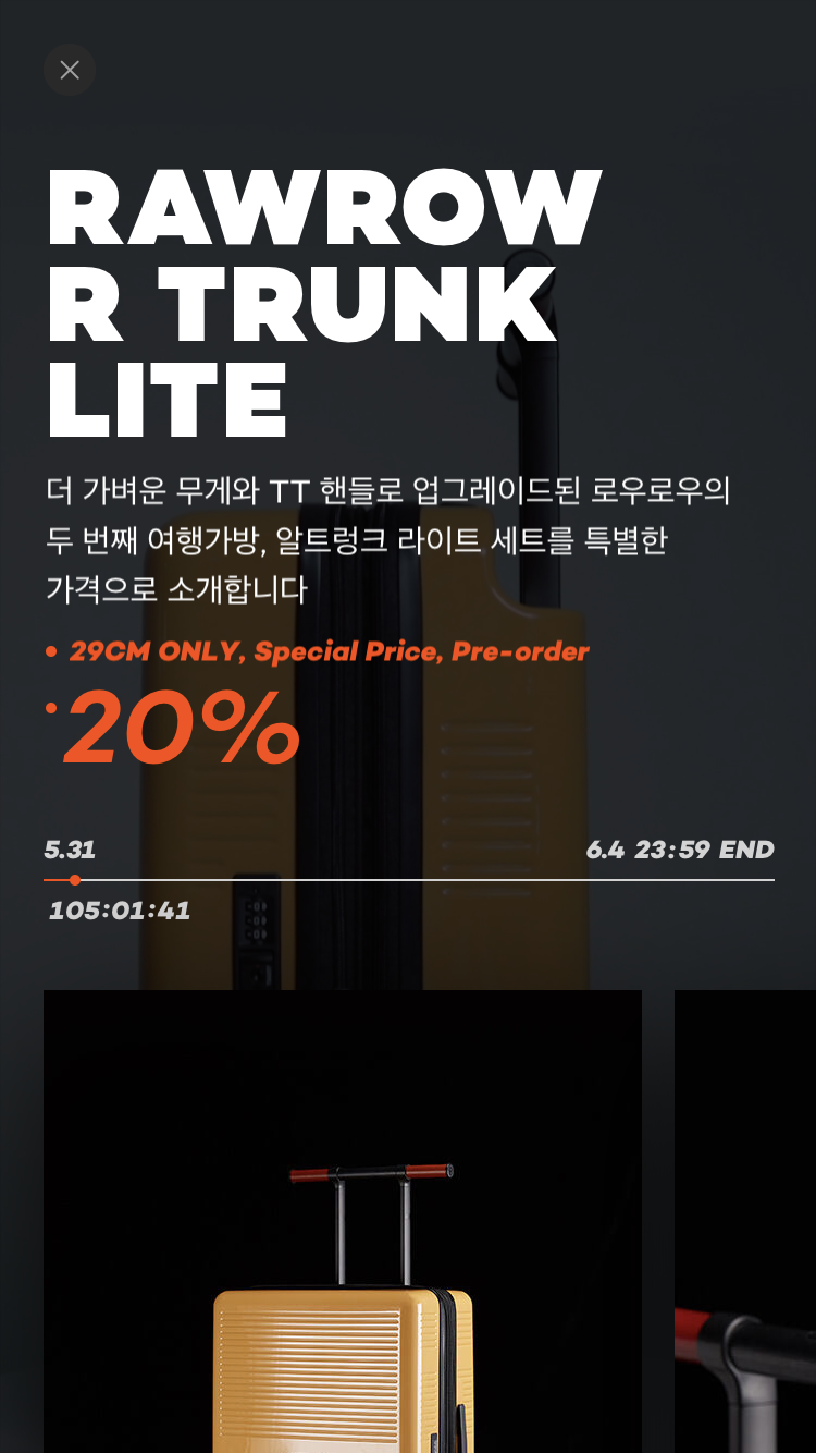여기서 부터는 사용성 측면이라기 보다는 브랜드 맥락 상 블랙을 사용하는 경우에 가깝다. 검은색은 보통 프리미엄 서비스의 느낌을 주기 위해 사용된다. 이를테면 카카오 블랙, 우버 블랙처럼 프리미엄 이미지를 주기 위해 네이밍부터 블랙을 사용하는 서비스들이 많다. V live 앱의 경우 유료 서비스인 Fanship은 진입 시 다크 테마로 변경된다. 29cm는 3일 간만 열리는 기획전 블랙딜을 운영하며, 이벤트 페이지는 항상 다크 테마를 유지하고 있다. 프리미엄 혹은 특별함을 표현하는 가장 빠른 방법 중 하나.