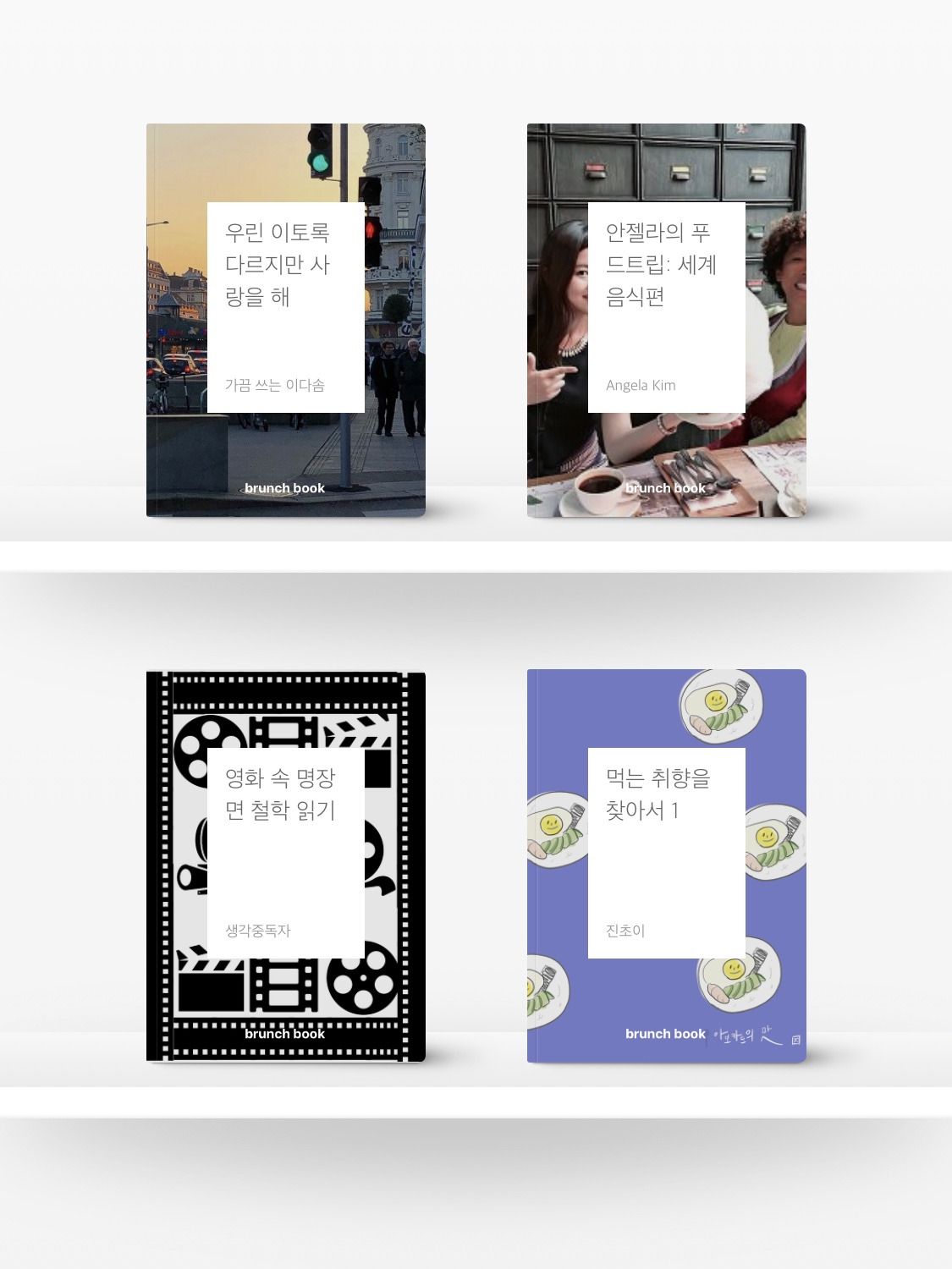 마침 브런치 메인에서도 브런치북이라는 신규 기능을 소개하기 위해 책과 책장을 묘사한 섹션이 추가됐다. 옛날 뉴스 스탠드처럼 질감이나 구체적인 묘사는 없지만 현실 세계의 메타포가 깔끔하게 표현된 것. 현대적인 스큐어모피즘이 드러나는 적절한 예시라 생각한다.