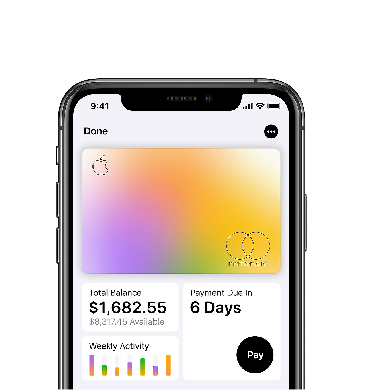 또한 시각적으로 완성도를 높여주기 때문에 '잘 완성된 믿을 만한 서비스'라는 안정감이 든다. 애플 카드의 경우 실물과 앱 내의 그래픽이 자연스럽게 이어지며 사용자의 이해를 돕는다. 여기에 애플카드 만의 브랜드 아이덴티티로 그라데이션을 활용하고 있다.