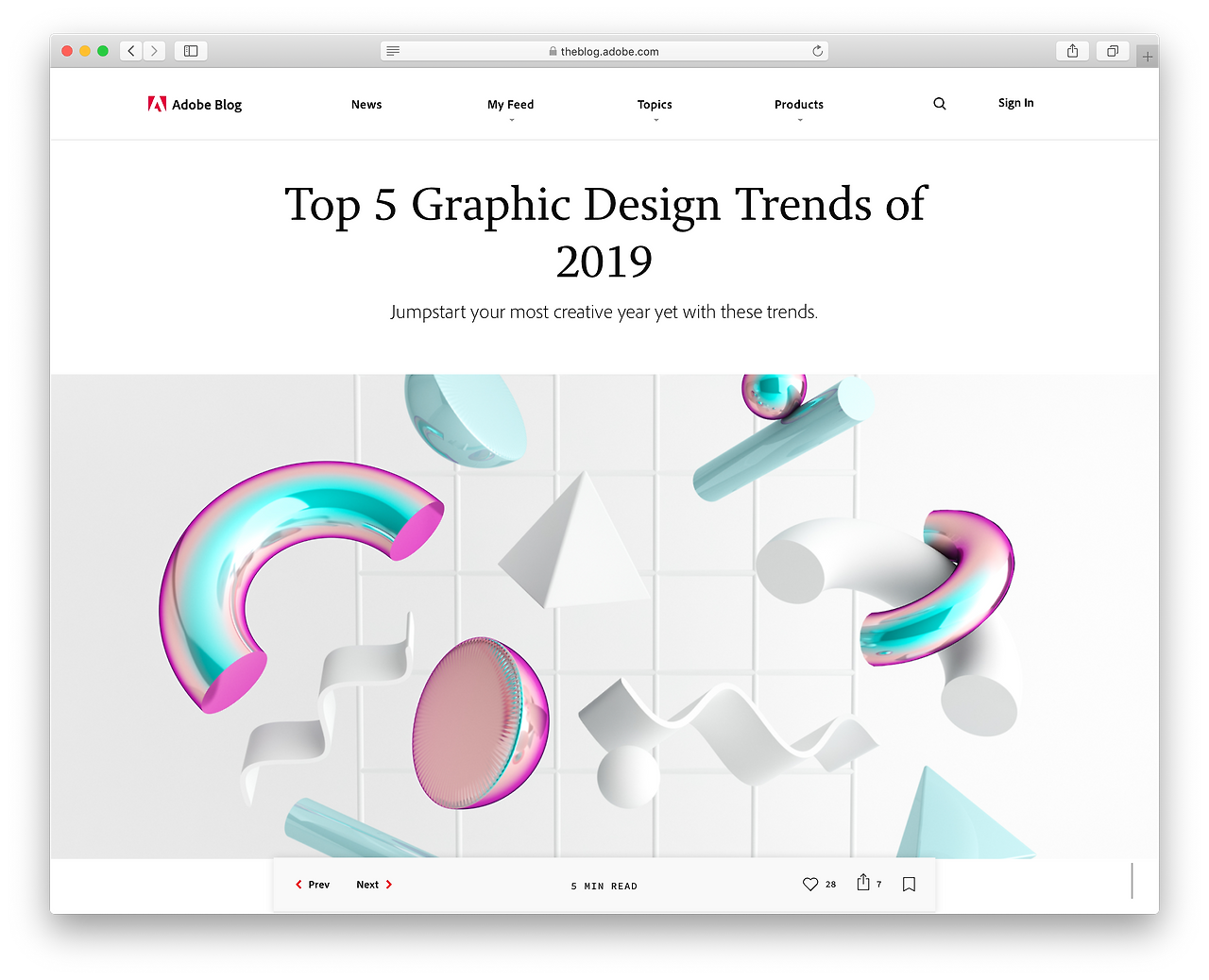 지난 글 그라데이션 2.0(지난 글)과 더불어, 3D는 더 풍성한 그래픽을 표현하기 위해 사용된다. 플랫 디자인에 익숙해진 사용자들에게 간결한 비주얼로 어필하기 힘들어진 것이다. 평면적인 일러스트, 아이콘, 사진보다 더 강력하고, 감각적인 경험을 주는 요소로 3D가 등장했다. 최근 3년 간의 디자인 트렌드 기사들을 보면 3D가 빠진 적이 없을 정도로 각광 받는다. 타이포그래피, 스팟 그래픽, 히어로 이미지 등 거의 모든 곳에서 3D 아크워크가 트렌드로 자리 잡는 중이다.