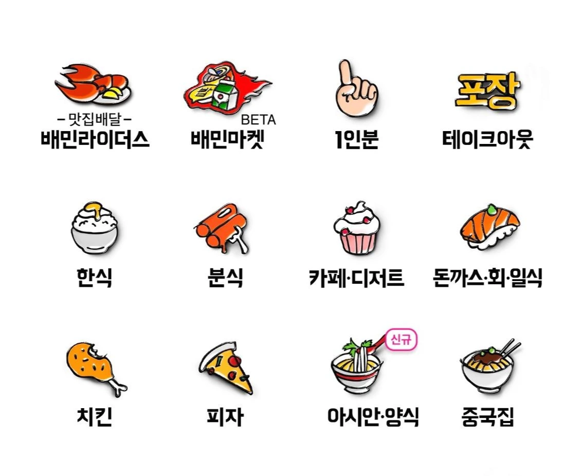 그리고 배달의 민족. 왠지 뱃지 사진을 잘 보정한 것 같아서 3D는 아닌 것 같고, 스큐어모피즘이라 보기 애매하다. 그래도 나는 스큐어모피즘이라고 답하고 싶다. 누가봐도 금형뱃지다. 아이콘이어도 되는 작은 요소임에도 너무나 정성스럽게 뱃지 이미지고 정석적인 아름다움은 아니지만 하나 하나 뜯어보게 만든다.