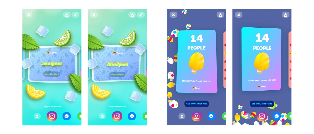 위치 공유 SNS인 젠리(Zenly)는 일반적인 서비스라면 과하다고 적용 못했을 과감한 그래픽이 사용된 서비스 중 하나다. 최근엔 플랫한 2D 스티커에서 선명한 색감의 3D스티커로 변화했고 앱 아이콘도 3D가 되어 스큐어모피즘 2.0을 뒷받침하는 가장 좋은 예라고 생각한다.