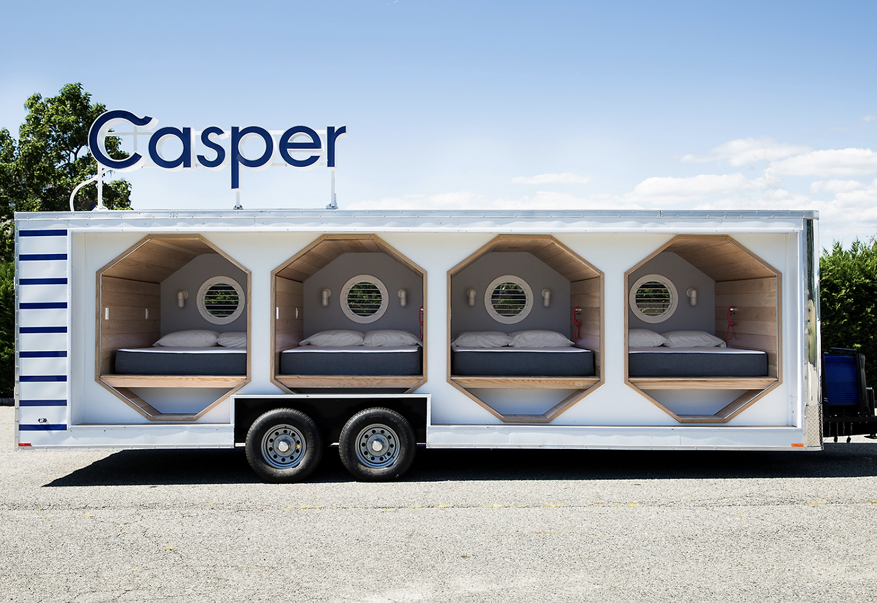 매트리스 브랜드 캐스퍼는 따로 쇼룸이 없어 미리 누워볼 수가 없었다. 뻔한 쇼룸을 만드는 대신 낮잠 잘 수 있는 차(Nap Mobile)을 만들어 돌아다녔다. (2016)