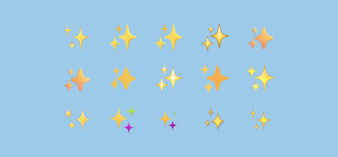보다보니 이 반짝이는 형태는 어디서 나온 건지 참 궁금합니다. 단순히 ✨ 이모지에서 출발한 걸까요? 언제부터 왜 우리는 반짝이를 이 형태로 사용하게 됐을까요?